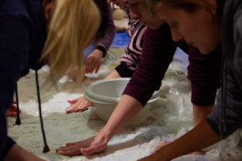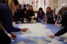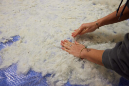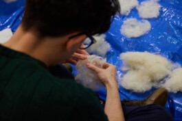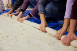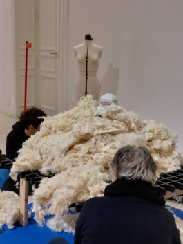 “JUST DO LAINES” est une pièce évolutive et participative qui traduit l’engagement physique nécessaire à la création d’une pièce feutrée. Dans une démarche de reconnexion aux territoires et aux héritages ainsi qu’une envie de savoir faire par soi-même, Ophélie et Marina invitent le public lors de trois happenings à réapprendre ces gestes oubliés. Travailler la laine, c’est se rendre compte que ce sont des gestes très physiques, répétitifs, qui mènent à des efforts extrêmes. Les